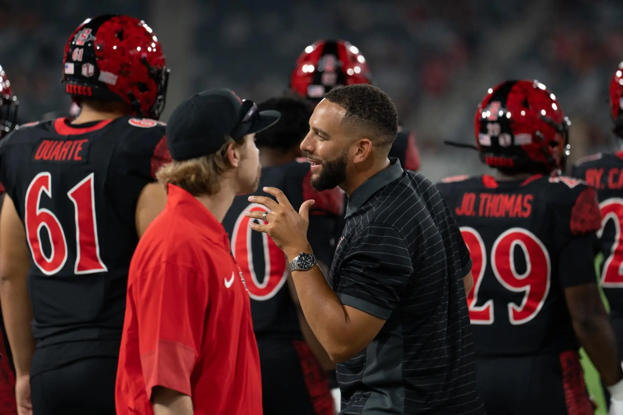 Morgan Mitchell with other coaches and players on the SDSU Football Team
